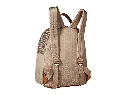 Details: Let your essentials feel classy in the Tommy Hilfiger® Imogen Backpack! Faux-leather construction. Zipper closure. Top carry handle. Adjustable shoulder straps. Exterior boasts brand detail pattern with strap accents and front slip pocket. Flat bottom. Lined interior features a zipper pocket and three slip pockets. Imported. Measurements: Bottom Width: 10 1⁄2 in Depth: 5 in Height: 13 in Strap Length: 36 in Strap Drop: 16 in Handle Length: 8 1⁄2 in Handle Drop: 2 1⁄2 in Weight: 1 lb 7 oz