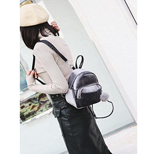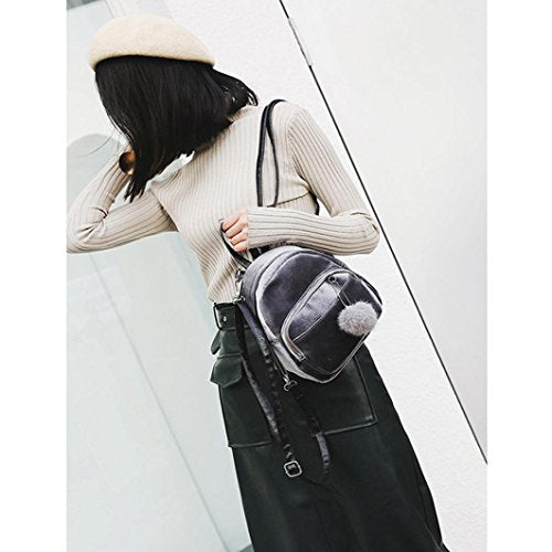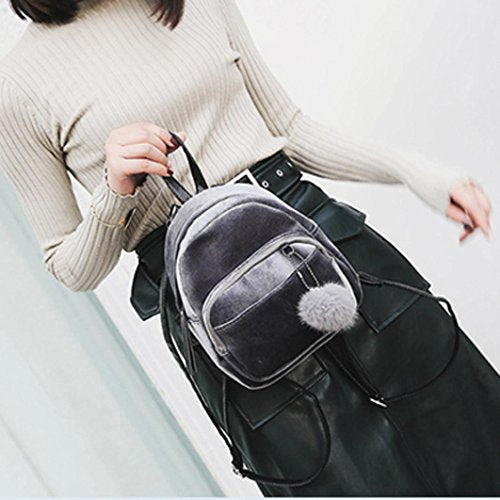 Women Girls Mini Fur Ball Backpack Fashion Shoulder Bag Travel School Bags (Gray)