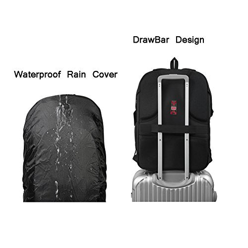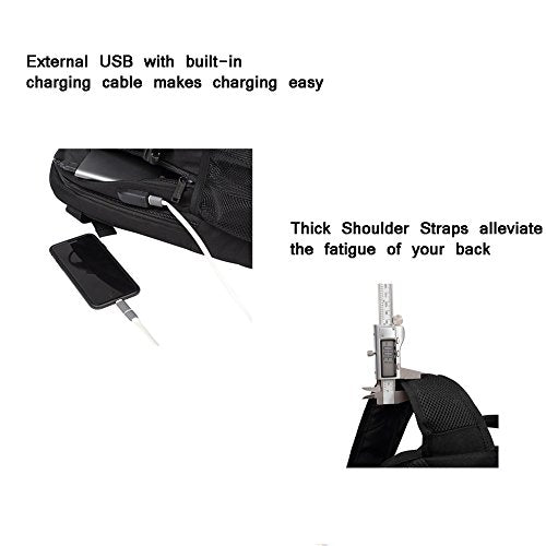 - Main Features: (1) Shockproof function; (2) Water Proof Rain Cover; (3) External USB with built-in charging cable; (4) Double chunky zippers; (5) Headphone Wire Hole Function (pls kindly note: If needed, you need to open a hole on the headphone cord jack); (6) Detachable keychain; (7) Air-flow breathable back padding; (8) Draw bar design; (8) shoulder-friendly.