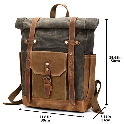 Mwatcher Waterproof Waxed Canvas Leather Backpack College Weekend Travel Rucksack 15in laptops