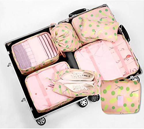 - USE 8 items: 1. Big mesh cubes:10-12 shirts, 2. Middle mesh cubes: 6-8 shirts, 3. Small mesh cubes: 4-6 shirts, 4. Underwear bag: for bra, underwear and socks, 5. Shoes bag: It is not just a shoe bag. It can also be used as makeup bag, toiletries bag, clothes package and for other uses. 6. Flat bag zipper: for your toiletry accessories, personal cosmetics or electronic, 7-8. Laundry bag: help to separate your dirty clothes at the end of the trip