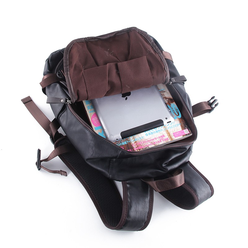 Men'S Retro Backpack School Bag Travel Satchel Pu Leather Book Bag Rucksack Uk-Brown