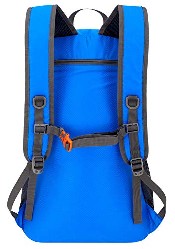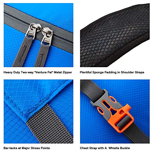 - 【Compact & Comfortable】It weighs only 0.7 pounds, can easily fold into its own pocket for storage,and unfold it when you need it. Breathable mesh shoulder straps with plentiful sponge padding help relieve the stress from your shoulder. The chest clip with a whistle buckle work perfectly to distribute the pack’s weight and keep it steady and centered. A must have for sports , hiking, camping and traveling.