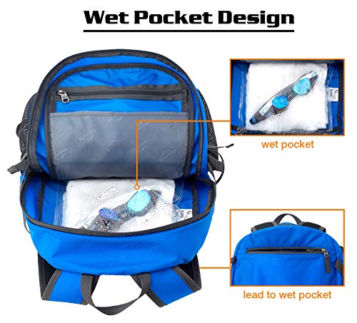 - 【Upgraded Wet Pocket Design】Venture Pal backpack stands out with more humane design for easy and convenient use. One waterproof wet pocket is added to the main compartment, a zipper on the back of this backpack which led to the internal wet pocket, to better separate sweaty clothes, towels or other personal things after swimming or taking exercise.