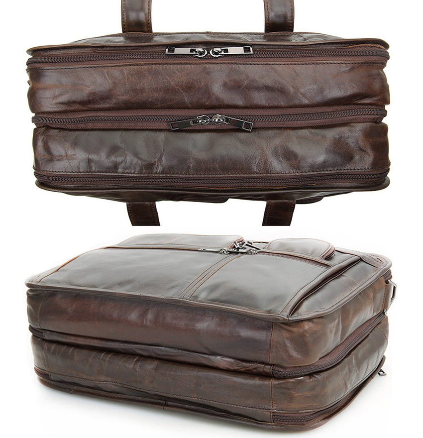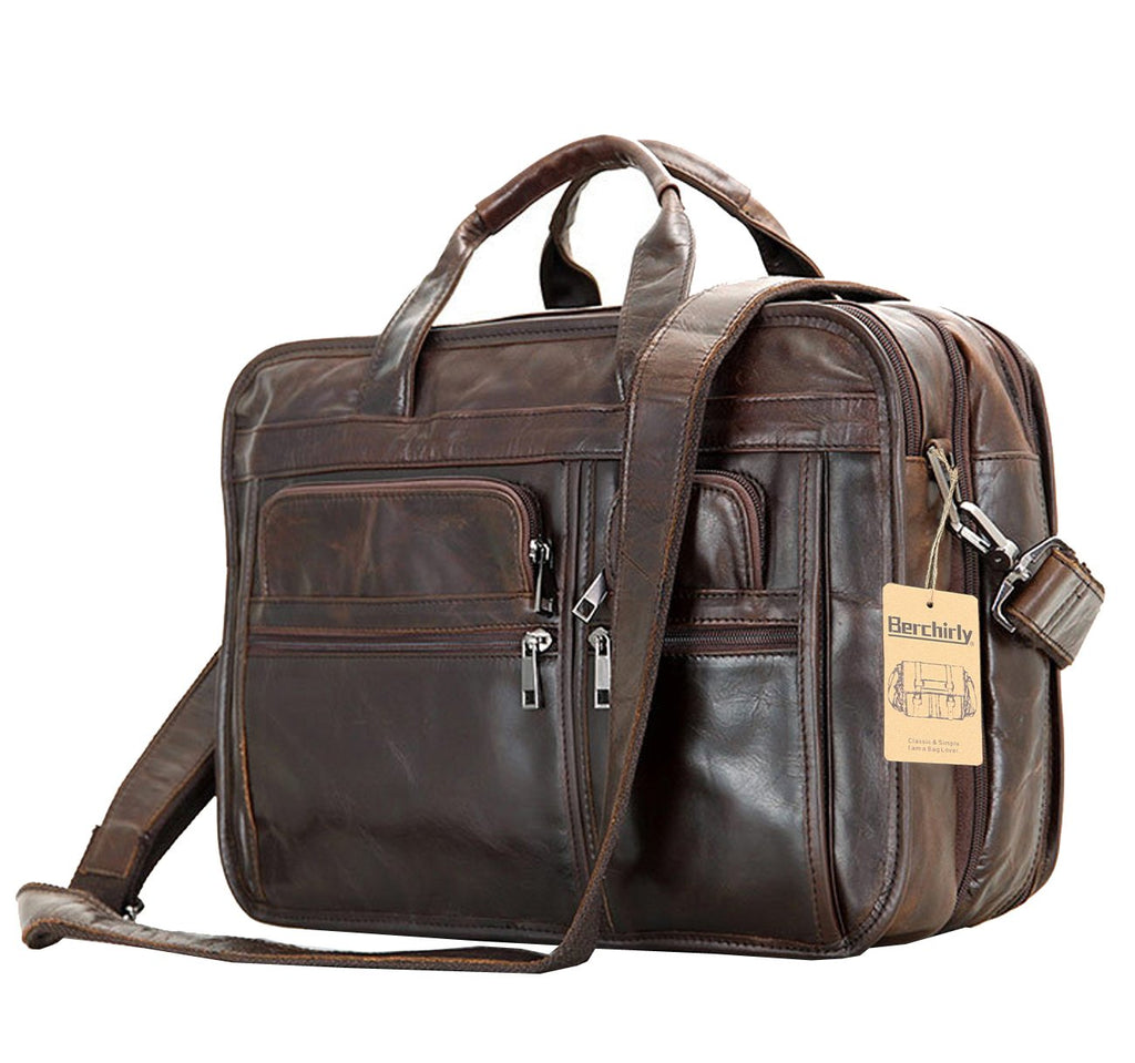 Leather Men Bag,Berchirly Genuine Leather 15inch Expandable Laptop Computer Business Briefcase Bags Cowhide Handbag Case