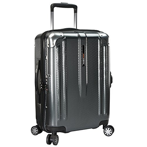 Details: New London polycarbonate hardside spinner trunk luggage suitcase is made of 100% polycarbonate hardshell and unique pattern embossed surface that is scratch resistant