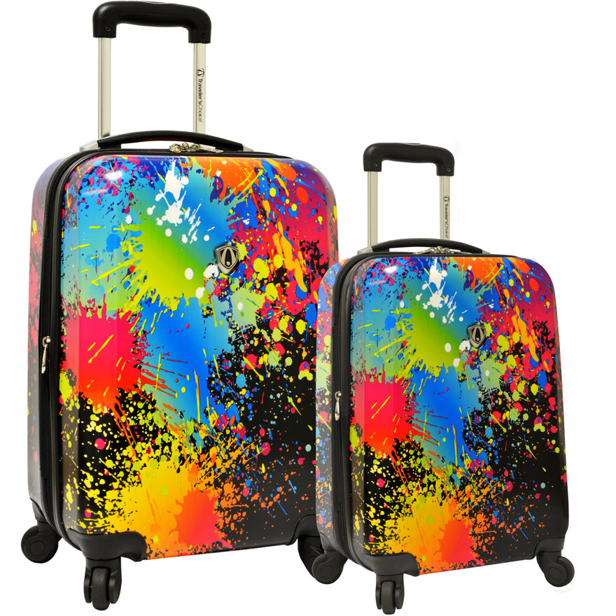 Find your luggage fast at baggage claim with the Travelerrsquo;s Choice 2 piece Paint Splatter expandable hardside luggage set. With a 28.5rdquo; large bag, and 21rdquo; carry on spinner, yoursquo;re all set for trips of any length! The 360deg; spinner wheels will let you move your bags easily in any direction. The lined interior of the cases also has tie down straps to keep your clothing from shifting, and pockets for organization. The lightweight MBS/polycarbonate material is durable and features a colorful paint splatter design.