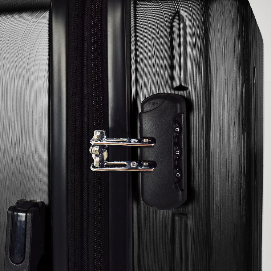 - 360-degree spinner wheels allow upright rolling in multiple directions
