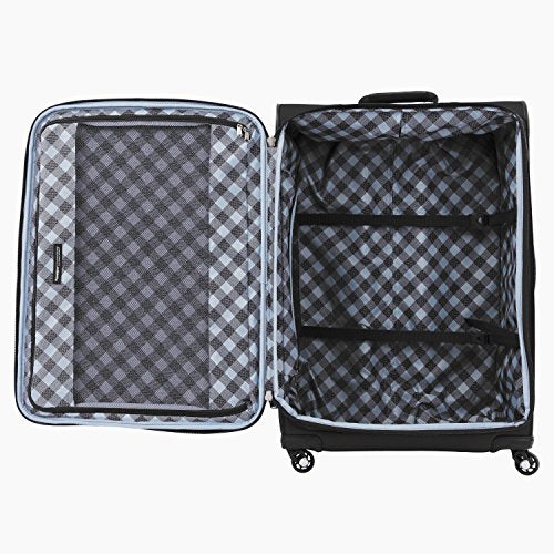 Details: Take travel to new lights with Travelpro Maxlite 5 luggage. Now, up to a half-pound lighter* and professionally tested for ultimate durability, this soft-sided luggage collection was thoughtfully designed for convenience and comfort. From carry-on totes and garment bags to smooth gliding Rollaboard bags and 4-wheeled spinner suitcases in multiple sizes, the Maxlite 5 line is built strong using lightweight materials that resist wear and tear, even though the most rigorous use. *Compared to Maxlite 4 collection. Polyester fabric with DuraGuard coating resists water and stains to keep luggage looking great. Ergonomic, high-tensile-strength zipper pulls are tough yet easy on the hands. H20 Guard protects the interior lining from moisture. Unobtrusive rear straps fit around the extension handle of a Rollaboard or spinner suitcase for secure stacking and hands-free mobility. Backed by Travelpro Built for A Lifetime Limited Warranty!