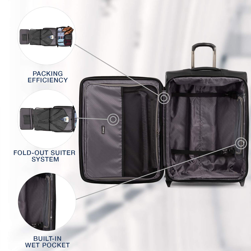 Details: A durable Rollaboard like the flight crews use-in a checked bag size for medium and longer trips. The crew versapack 26" Expandable Rollaboard goes the distance dependably and securely with ultra-sturdy construction, A built-in lock that allows TSA authorities to safely unlock and relock the bag when needed and a tip-resistant zippered expansion that increases packing space up to two inches. Inside, the built-in fold-out suiter system protects against wrinkles while adjustable hold-down straps, water-resistant storage and an accessory pocket keep you organized with convenience and flexibility. Two ultra-strong, oversized, high-performance ball bearing wheels roll smoothly over any terrain led by a four-stop, height-adjustable PowerScope handle. Built for professional-grade dependability With robust corner armor, skid guards and heavy-duty wheel housings, crew versapack is the civilian version of the luggage flight crews use, tested to meet the same superior quality and durability standards. This Rollaboard is further backed by the comprehensive built for a lifetime limited warranty with our trusted companion promise.