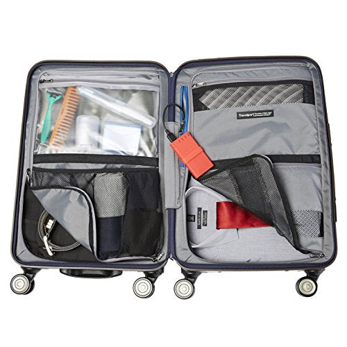 - Patented magnatrac system has self-aligning magnetic dual wheel spinners that ensure luggage rolls in a straight line