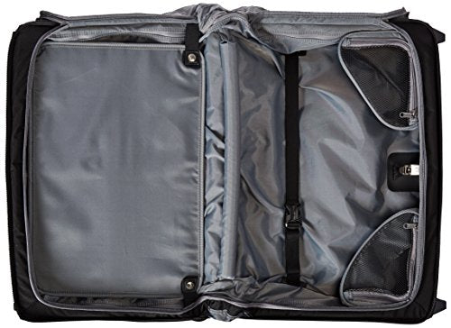 - Intelligent interior features large zippered panel pockets that provide organization for clothing. Metal hanger clamp can hold up to 4 hangers with garments on them. Multiple accessory pockets are perfect for socks, ties, toiletries and more. Extension panel and foam padded roll bar help reduce wrinkling of longer garments. Adjustable hold-down straps keep contents in place
