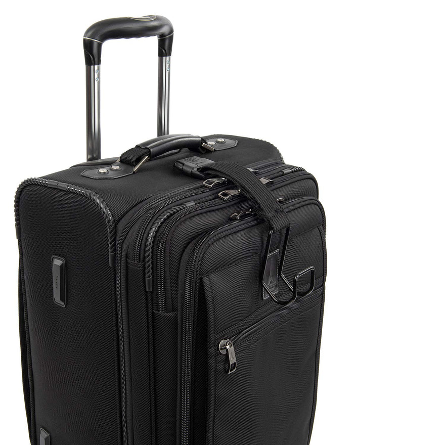 Details: The classically-styled, limited-edition Crew Expert Max carry-on expandable Rollaboard with an optional zippered 2" Expansion gives you maximum space in a rolling carry-on bag that looks great and handles heavy-duty use. This carry-on is the modern evolution of the first rolling suitcase-the original Rollaboard- and works as an all-in-one for short to medium-length trips, or use the convenient add-a-bag strap with aluminum j-hook to carry additional bags hands-free. You're sure to love All the additional capacity of this max carry-on, but don't overpack the front pockets and run the risk of not fitting in the sizer bin. Made for the road warrior using the exact same high-quality components and Materials used on luggage available to flight crews only, this bag is built for extreme durability with a honeycomb frame system that is ultra-strong yet lightweight and has robust corner armor, a rear skid plate, crash guard wheel housings and built-in bumpers that provide protection against abrasion on high-wear points. Packing features include padded laptop storage (up to 17"), removable fold-out suiter to protect against wrinkles, A removable TSA-compliant toiletries bag that fits perfectly in an exterior pocket for ease through airport security, full-length interior lid pocket, side accessory pocket and butterfly-style hold down system. Plus, a convenient, reinforced, gusseted back pocket is ideal for extra storage on the go. Two ultra-strong, high-performance, sealed ball bearing wheels provide the smoothest roll led by an "anti-crush" Extension handle with multiple stops and an extra wide, ergonomic handle grip for total comfort.