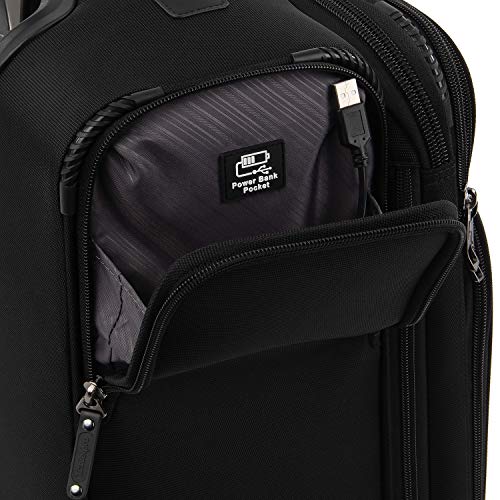 - External USB port provides access to power on the go. Exterior power bank pocket provides faa-compliant power connected to an external USB port (battery not included). exterior, padded pocket fits Laptops up to 17". Patented PowerScope aluminum extension handle minimizes wobble and has four stops to accommodate users of different heights (36", 38", 40" And 42.5"). high-performance ball bearing wheels ensure the smoothest roll and long-lasting durability. High-density ballistic nylon fabric with duraguard coating resists stains and abrasions