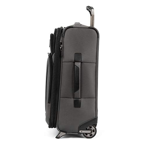 Details: Pack to the max with luggage that is truly all your own. The max carry-on expandable Rollaboard is designed for total packing versatility and customizable with a variety of interchangeable Travelpro exclusive zip-in organizers. Included inside the lid is a removable zip-in garment organizer, ideal for storing folded shirts, dresses and jackets. Also available for purchase separately are four additional coordinating Travelpro exclusive zip-in organizers-a laundry organizer for bathing suits, workout clothes and other damp items, A packing cubes organizer for shorts, shirts and accessories, A suitor organizer to keep hanging clothes wrinkle-free and an all-in-one organizer for wet and dry storage (each sold separately). created for domestic travel on larger aircraft, this bag is sized to max out the sizer bin and fit In the overhead bins of most major yours. Airlines. It also features a tip-resistant zippered expansion to increase packing space up to two inches, but be careful not to overpack the exterior pockets and risk making it too big for the sizer bin. Enjoy total convenience with a built-in USB port and dedicated exterior power bank pocket, exterior padded laptop pocket and removable TSA-compliant toiletries bag that stores perfectly in a same-sized exterior pocket. Two ultra-strong, oversized, high-performance ball bearing wheels roll smoothly over any terrain led by a four-stop, height-adjustable PowerScope handle, while the add-a-bag strap and metal j-hook let you carry additional bags hands-free. Built for professional-grade dependability With robust corner armor, skid guards and heavy-duty wheel housings, crew versapack is the civilian version of the luggage flight crews use, tested to meet the same superior quality and durability standards. This Rollaboard is further backed by the comprehensive built for a lifetime limited warranty with our trusted companion promise.