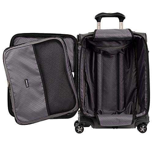Details: Pack to the Max with luggage that is truly all your own. The Max Carry-on Expandable Spinner is designed for total packing versatility and customizable with a variety of interchangeable Travelpro exclusive Zip-In Organizers. Included inside the lid is a removable Zip-In Garment Organizer, ideal for storing folded shirts, dresses and jackets. Also available for purchase separately are four additional coordinating Travelpro exclusive Zip-In Organizers-a Laundry Organizer for bathing suits, workout clothes and other damp items, a Packing Cubes Organizer for shorts, t-shirts and accessories, a Suitor Organizer to keep hanging clothes wrinkle-free and an All-In-One Organizer for wet and dry storage (each sold separately). Created for domestic travel on larger aircraft, this bag is sized to max out the sizer bin and fit in the overhead bins of most major U.S. airlines. It also features a tip-resistant zippered expansion to increase packing space up to two inches, but be careful not to overpack the exterior pockets and risk making it too big for the sizer bin. Enjoy total convenience with a built-in USB port and dedicated exterior power bank pocket, exterior padded laptop pocket and removable TSA-compliant toiletries bag that stores perfectly in a same-sized exterior pocket. Plus, this spinner's PrecisionGlide System ensures precise control and effortless roll on eight ultra-durable, 360 Degree MagnaTrac Spinner Wheels led by a four-stop, height-adjustable PowerScope Handle with comfortable Contour Grip. Built for professional-grade dependability with robust corner armor, skid guards and heavy-duty wheel housings, Crew VersaPack is the civilian version of the luggage flight crews use, tested to meet the same superior quality and durability standards. This spinner is further backed by the comprehensive Built For a Lifetime Limited Warranty with our Trusted Companion Promise.