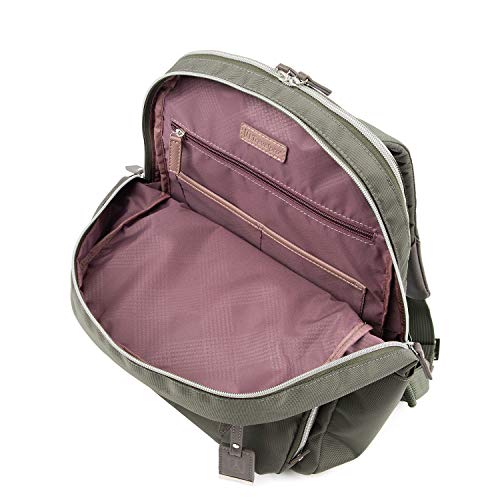 Details: The Maxlite 5 women's backpack from Travelpro is designed specifically for the modern woman in a slimmer profile than our laptop backpack. Convenient features built-in to this lightweight, ultra-durable backpack include a padded laptop or tablet sleeve, organizational pockets for power cords, back-up batteries, office supplies and more, a quick-access front pocket with magnetic closure ideal for cell phone or key storage and an exterior side pocket that fits a water bottle or compact umbrella with ease. Wear this bag with comfort using the padded shoulder straps or use the unobtrusive rear strap to Stack this bag on top of a spinner or Rollaboard suitcase for hands-free mobility.
