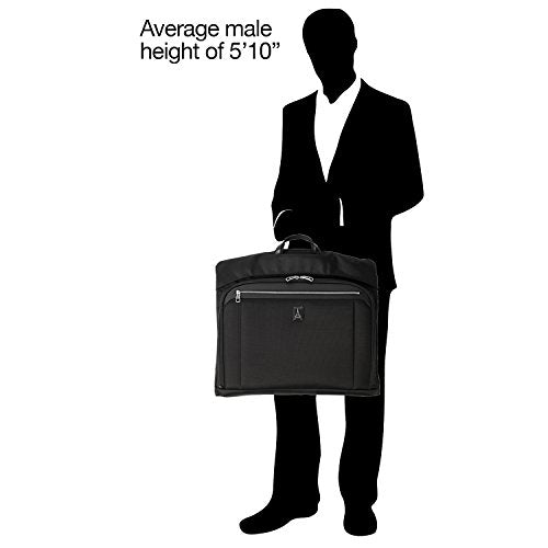 Details: You've got style. This bag keeps it protected. The Platinum Elite Bi-Fold Carry-on Garment Valet from Travelpro delivers luxury in a lightweight carry-on garment bag that accommodates a hanging suit or dress and protects from wrinkles. Built-in interior pockets provide additional capacity for packing shirts or folded clothes, accessories and more. Premium, durable fabric, leather trim and chrome touches add polish and pizzazz, while two exterior pockets are designed for convenient access to onboard essentials or increased packing capacity. This Fit to Fly carry-on bag has been sizer been tested to accommodate overhead bin space on most major US airlines. Backed by our built for a Lifetime Limited Worry-Free Warranty that covers the cost of repair for damage from airline or other common carrier for the life of the bag after registration under the trusted companion promise.