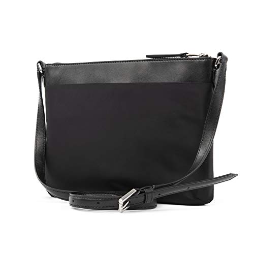 Details: Purposeful, practical design that doesn't compromise on style: The Women’s Platinum Nylon Crossbody brings you versatile and lightweight options that's perfect for work, travel, and everyday outings. The zippered main compartment opens to reveal a roomy interior with two additional smaller pockets, including one that zips to keep your smaller things organized. We outfitted this lightweight silhouette with soft leather trim .A pocket on back and front features a magnetic snap, making it the perfect place to securely stash your quick-access items.