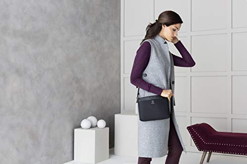 - Travelpro QuickSlip pocket with magnetic closure is ideal for cell phone storage while going through airport security and genuine leather shoulder strap adjusts to your ideal length
