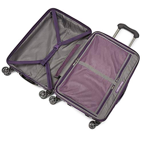 - 360-degree 8-wheel spinners roll effortlessly in any direction. Roomy main compartment expands 2" to maximize packing flexibility.