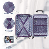 - Features low-profile top handle, Interior divider and hold-down straps for packing flexibility. Integrated lock allows TSA authorities to safely unlock and lock suitcase for inspection when needed (default lock code is 0-0-0 to open)