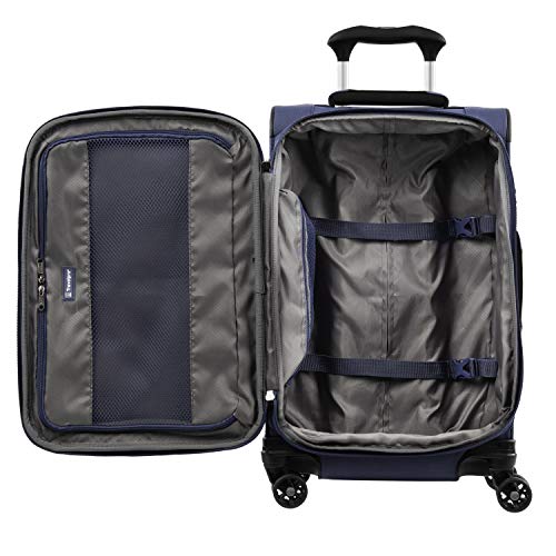 Details: "Go for a spin with the Tourlite 21 Expandable Carry-on Spinner. Sized to meet carry-on size restrictions for most domestic airlines, this is the ideal bag for short to medium-length trips. The unique bottom-tray design helps align and stabilize the 360 8-wheel spinners for enhanced durability and effortless maneuverability led by a height-adjustable PowerScope Lite handle with comfortable Contour Grip. Inside, a full-length interior lid pocket, side accessory pocket and adjustable hold down straps offer packing flexibility to keep you organized and a tapered expansion capability of up to 2 provides added capacity while keeping the center of gravity low. Unobtrusive top, side and bottom carry handles provide comfortable carrying options and the treated polyester fabric resists moisture and stains wherever your touring takes you! Backed by our Limited Lifetime Warranty.
