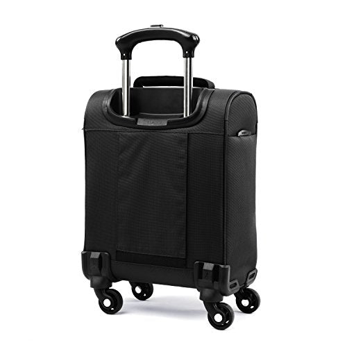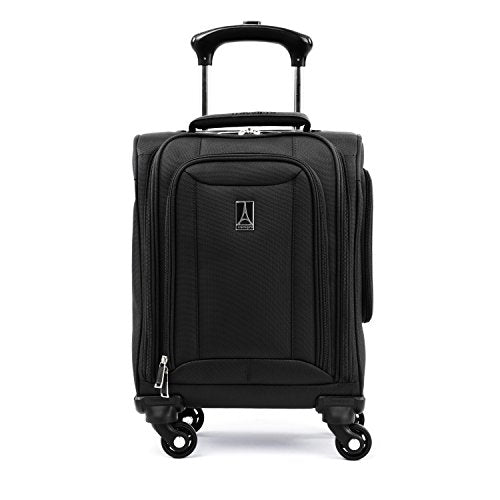 Details: Keep your valuables within easy reach at all times with this underseat carry-on case from Travelpro. The Travelpro WindSpeed Select Underseat Spinner Carry-On case is made from water-repellent polyester and features a lightweight and sturdy design with an aluminum pull handle, spinner wheels that offer 360 degree mobility, and a padded sleeve to hold your tablet or other electronics. The interior is fully lined and detailed with a removable hanging wet pocket to hold cosmetics or toiletries. The exterior features a side pocket to hold a water bottle or an umbrella, a front pocket to hold small accessories, and a top grab handle for easy lifting.