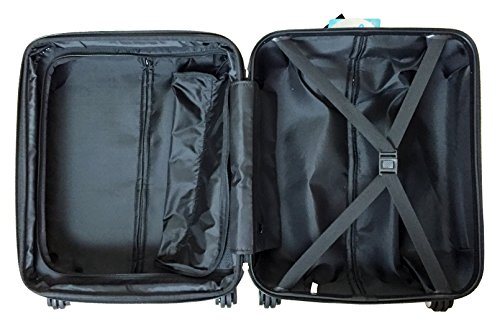 Details: ABS material gives outer shell rigidity / polycarbonate allows shell to absorb impact by flexing when under heavy pressure. High quality aluminum telescoping handle system expands with push button. 1 padded handle on top. 4 spinner 360 degree wheels. Inside compartment has black lining along with 2 straps. Inside has netted pocket which latches on to the other side of the case and can be used to separate the main compartment into 2 areas. Built in TSA combination lock. 10 year limited warranty.