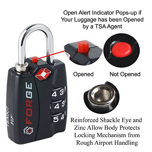 - NO HASSLE COMBINATION LOCKS. Set your own 3-digit combination with ease. It literally takes half a minute to enter your whatever combination you want with the detailed instructions and pictures included with the Forge TSA lock.