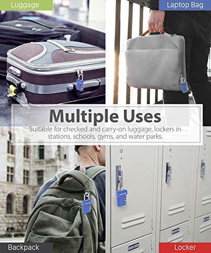 - [VERSATILE LOCKS WITH BRIGHT COLORS] The Fosmon TSA luggage pack has four distinctly colored locks that can help you keep the combinations straight and make it easy to identify checked luggage. The extra locks are great for family trips or to keep as a backup.