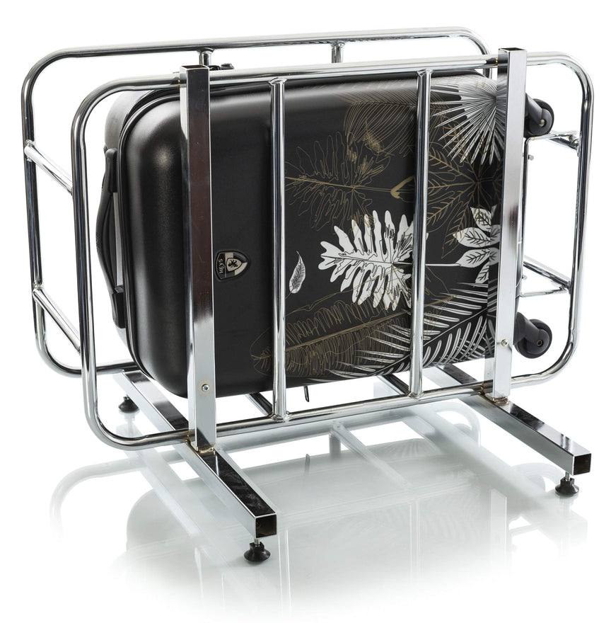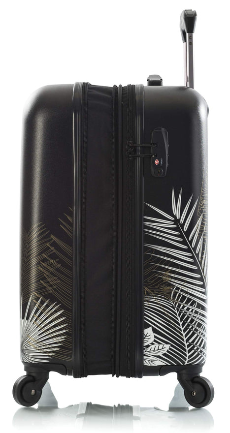 Details: Travel in style with this black and gold leaf 21-inch fashion spinner. The luggage features a fully lined interior with multiple pockets and compartments for optimal packing organization. This luggage is lightweight, durable, and features a zipper-released expansion system to allow for additional packing space.