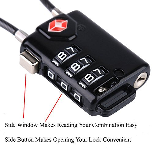 - SECURITY WITH THE FLEXIBILITY OF A CABLE LOCK. Cable locks can handle situations that normal lock shackles simply can't. Our lock's cable is thin enough to thread through all standard sized zippers and hard case lock holes but strong enough to protect your belongings. At a length of 4 in from end to end and an internal looped length of 1.5 in when locked, our cable offers the flexibility to secure nearly any suitcase, hard case, gun case, etc. on the market.