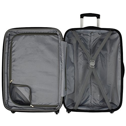 Details: Set includes: 20" and 28" expandable spinners. Lightweight and durable hardshell. Elegant bushed finish. Aluminum push-button handle system. 2-Inch expansion for extra storage capacity. Has 4-multi-directional spinner wheels and a fully-lined interior with divider. Interior center zippered pocket. 5-Point elastic tie-down straps. 20"H x 14"w x 9"D (+2" expansion). 28"H x 19.5"W x 11"d (+2" expansion)