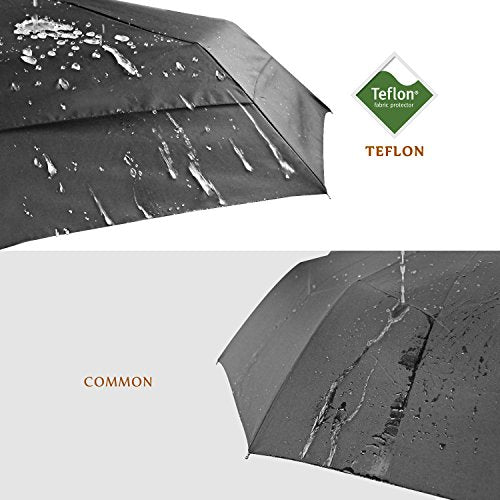 4. 210T Water Repellant Fabric and Coating - Dupont Teflon : 210T is the finest fabric ever used in any auto umbrella and we combine ours with a Dupont Teflon coating. This results in a high-density, water-repellant fabric that protects you from the rain and dries very quickly.