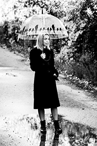 Details: A beautiful dome shaped clear umbrella with a chilling 'Hitchcock style' row of birds. It lets you lift your head and keeps you safe and dry.