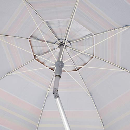 - Beach umbrella provides comfortable cooling shade; helps block the sun, heat, and wind