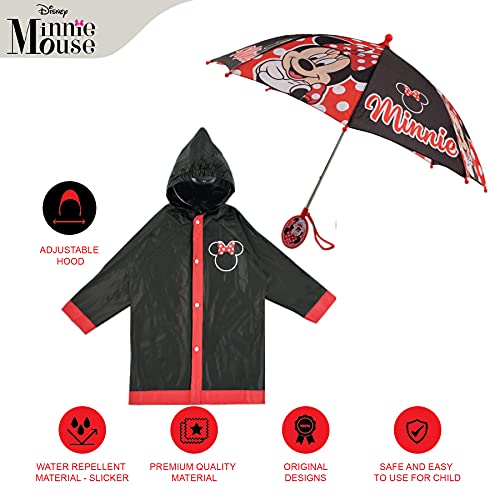 - PLAYFUL DESIGNS: Help her be a Rainy-day hero with these adorable and Lightweight Umbrella and matching Slicker set featuring imagery of her favorite Characters Minnie Mouse/Moana/Vampirina from Disney. Designed to Fit for Toddlers and Little Girl’s, and available in different sizes for ages 2-7, The Rain Slicker is moisture and humidity resistant.