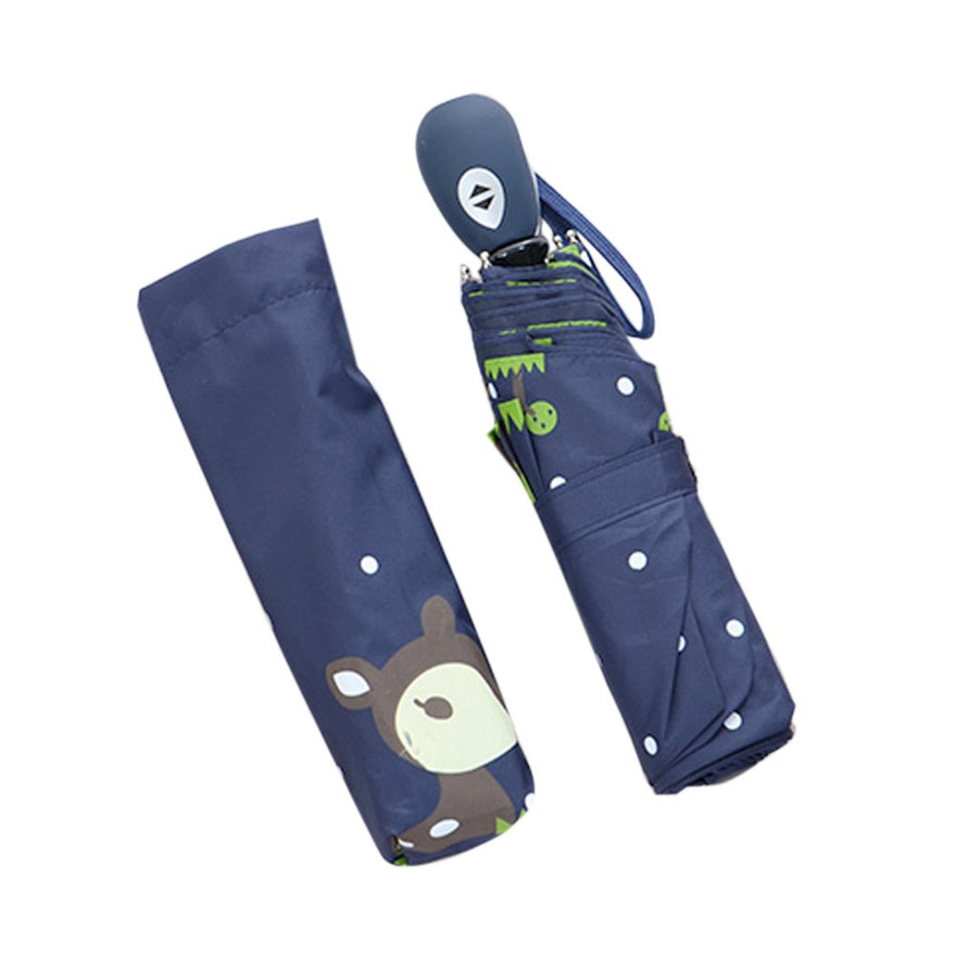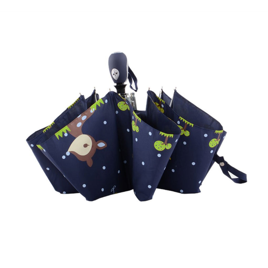 FakeFace Cute Cartoon Deer Flower Printed Travel Tote Mini Sun/Rain/Windproof Umbrella Auto Open&Close Compact Umbrella,Super Quality