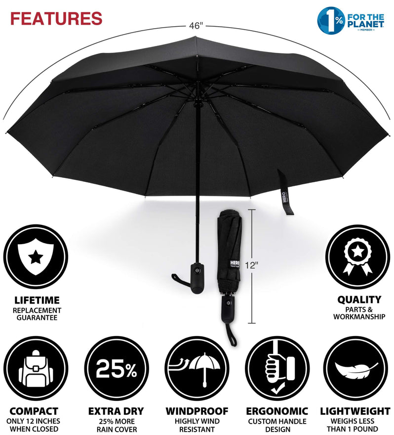 - ★ LIFETIME REPLACEMENT GUARANTEE - We individually test every HERO Travel Umbrella in the USA before shipping. And every order comes backed by our lifetime replacement guarantee. If anything ever goes wrong we will send you a replacement absolutely free!