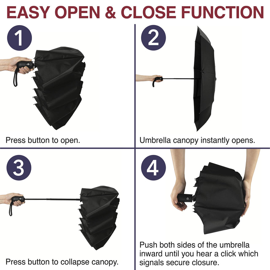 - ★ ADVANCED WINDPROOF PROTECTION - This premium, compact umbrella is perfect for daily use or while traveling the world, featuring 9 resin-reinforced fiberglass ribs that are designed to withstand big wind gusts with flexible stability for reliable rain protection.