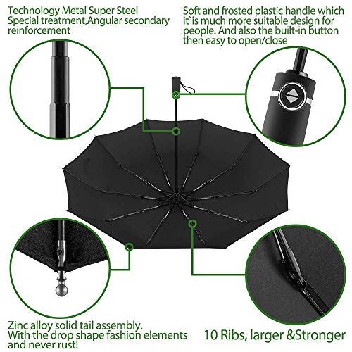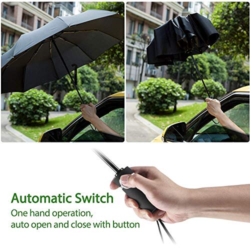 - AUTOMATIC FAST OPENING AND CLOSING: The open and close button allows you to extend and retract the umbrella in less than one second. Press the button once to automatically open the umbrella and press again to close it instantly. Thus, the umbrella is handled quickly and easily with one hand to keep it dry when your hands are busy.
