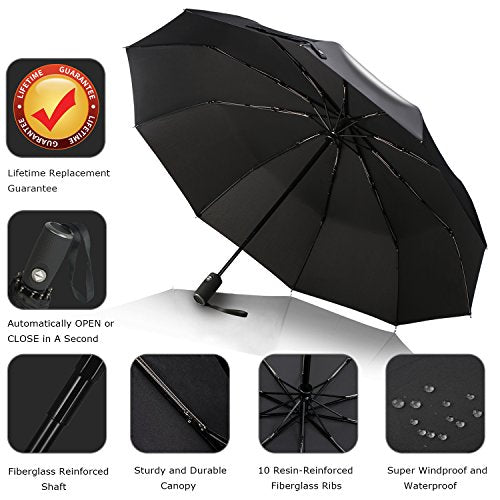 - AUTOMATIC OPEN / CLOSE: With one-handed press of a button, the Anntrue umbrella will be automatically OPEN / CLOSE in a second. You do not have to struggle with the closing your umbrella when getting into a car, building or tent. Now with this umbrella, No more waiting for your umbrella to open or close while you get soaked by the rain!