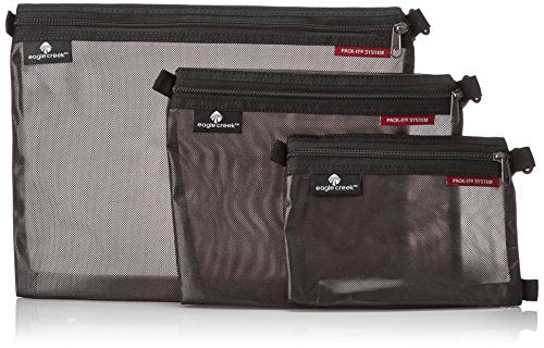 Details: Eagle Creek Pack It Sac Set This 3-piece set is the perfect solution to all your small packing needs. The slim profile and varying sizes of each bag will let you slide a plethora of items into your larger bags.