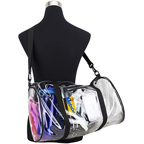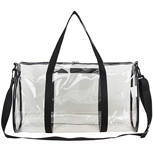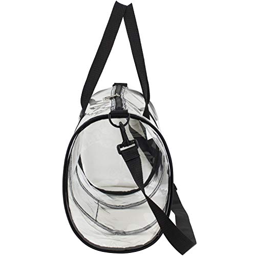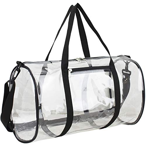 Details: Eastsport Clear Duffel with Removable Adjustable Crossbody Strap is a great, lightweight bag that promises reliable performance and hassle-free maintenance. The removable and adjustable crossbody strap can be extended from 28" to 52". The duffel can also be carried by hand or over your shoulder thanks to its versatile design. The bag features a zippered major compartment, which offers ample space to carry everything you need for the gym, school, game, special event, or work. This bag also has a front zip pocket for easy access and secure storage, making the duffel the perfect bag for all your needs!