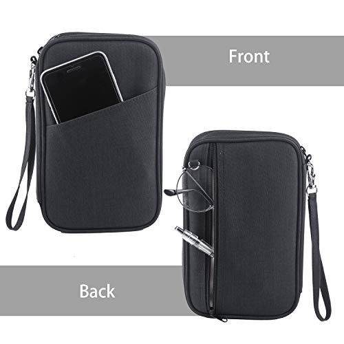 - GET EASY ACCESS TO EVERYTHING YOU NEED: The smart design of this travel document organizer enhances inside & outside storage, making it easier to find what you need. It features 2 large pockets for cash, 6 card slots and a pen holder in the middle, a large front pocket to host your iPhone and a zippered back pocket for your sunglasses, keys and more.