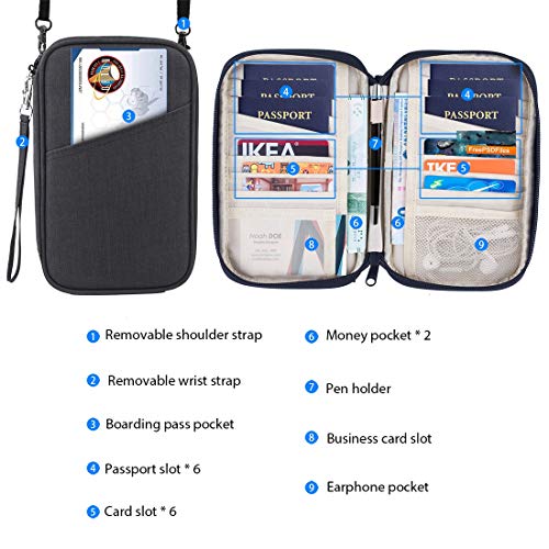 - A MODERN PORTABLE DOCUMENT ORGANIZER FOR MEN & WOMEN: Spacious without being bulky, this travel passport wallet is easily portable in 3 different ways. Carry it on the shoulder from shoulder strap, use the handy neck strap or the removable wristlet strap and let its elegant design complement your stylish looks on the air travel or your business trip.