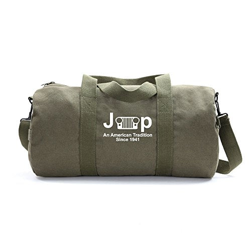 Jeep An American Tredition Army Sport Heavyweight Canvas Duffel Bag in Olive & White, Medium