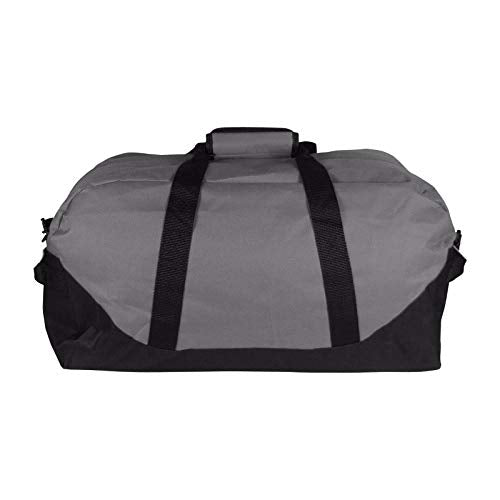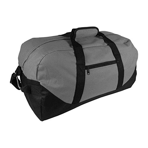 This bag is 21" long, perfect for airplane rides, travel, luggage, sports and gym use. This versatile bag has it all, and comes with 2 different two tone colors. It is long and is has almost a cubic foot of space inside. It has a side pocket for easy access and removable adjustable shoulder strap. MATERIAL: Polyester. SIZE: 21" X 11" X 11". FEATURE: Large zippered main compartment w/ zippered front pocket, top velcro handle, two side handles & removable shoulder strap.