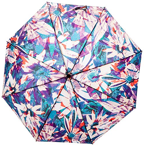 Details: Available in Nicole Miller's fashion prints, this compact automatic open super mini umbrella will keep you fashionable and dry on any rainy day. The compact size is perfect to keep stored in your backpack, purse, or messenger bag. When opened, this umbrella has a generous 42-inch arc. The 8-rib frame structure will withstand winds up to 80 mph and will out-perform the elements. The rubber spray finish handle features a push-button to automatically open your umbrella, providing protection from the elements faster.